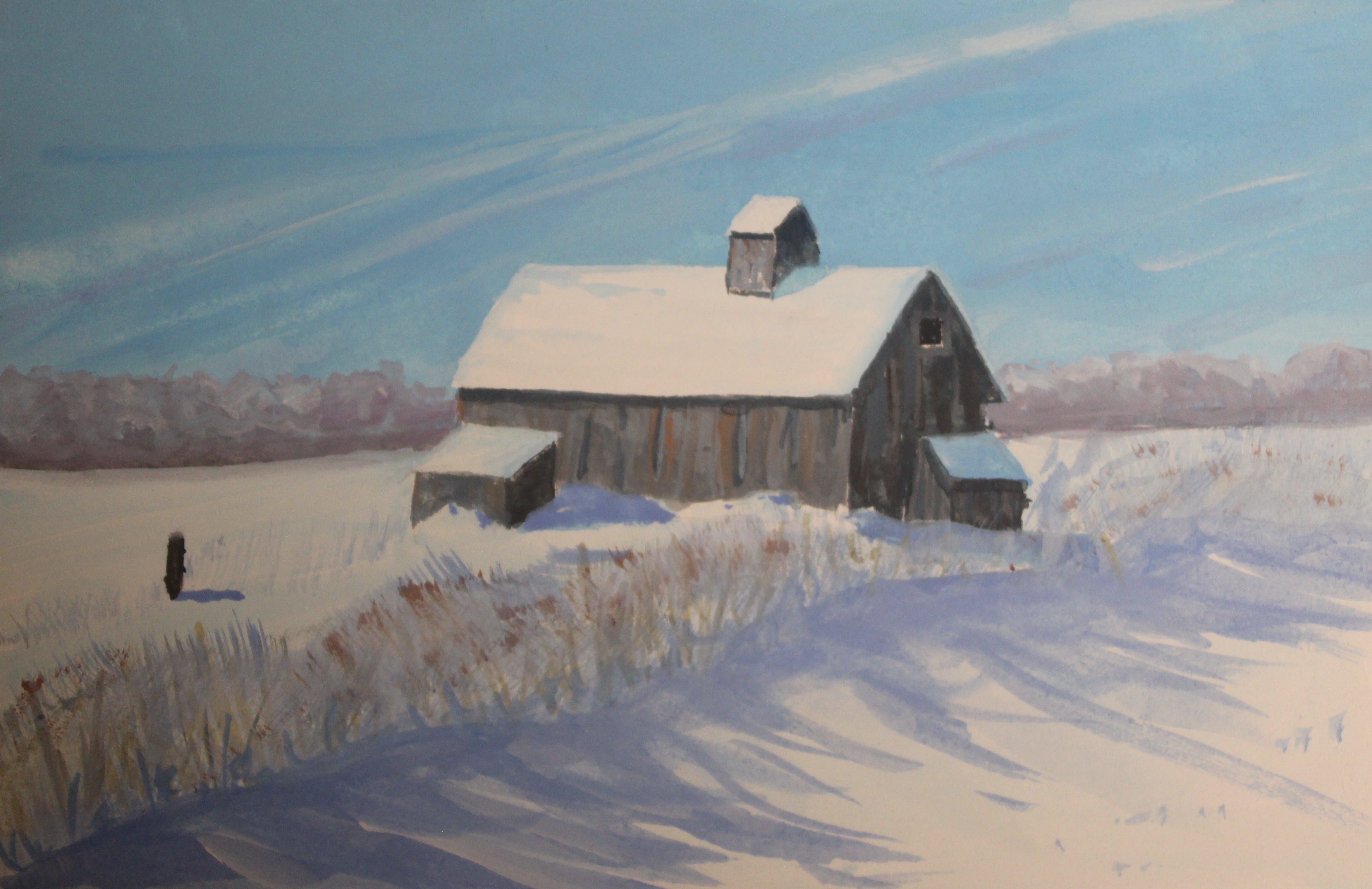 Mixed media is not a bad thing. Well-done, it doesn’t scream mixed media, but sometimes a little in a watercolor painting makes sense. So does mixing acryl gouache with plain gouache. I have used this for skies or for toning the paper in a gouache project.