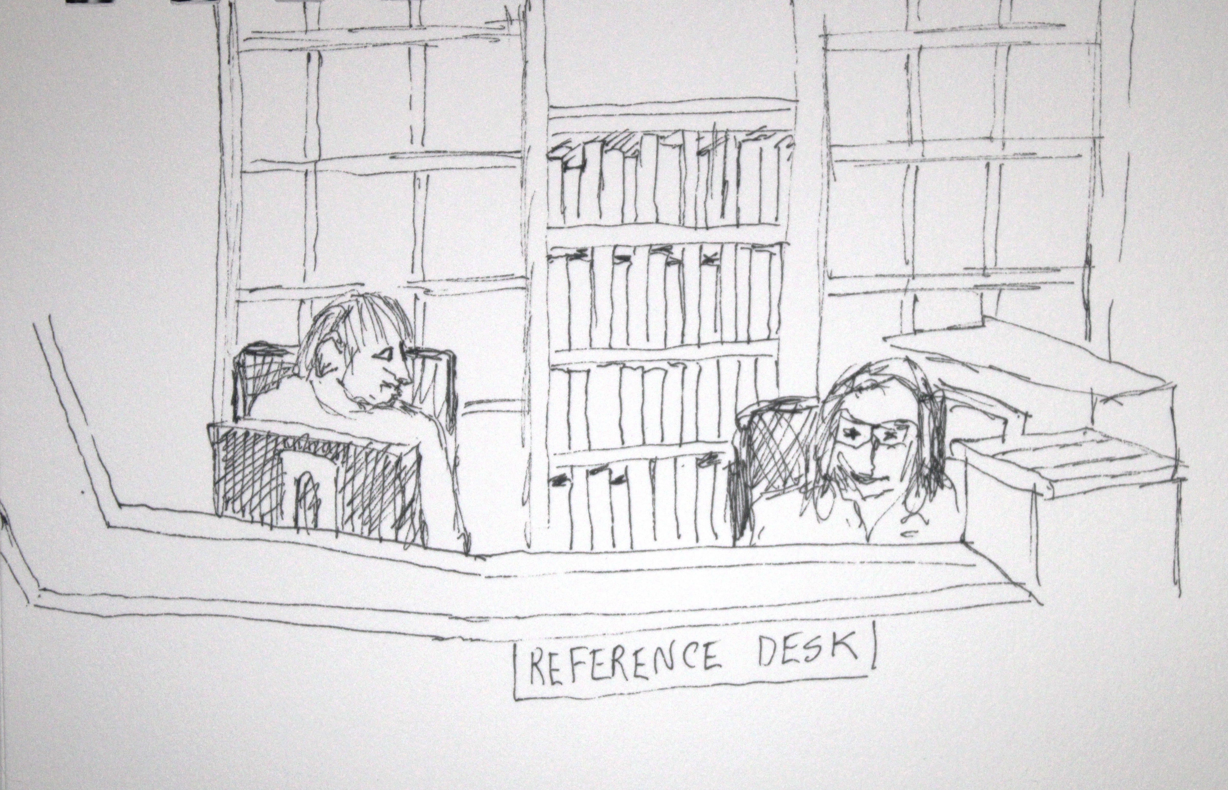 When I sat down to page through my initial pile of books, I pulled out my sketchbook and attempted a bit of sneaky art. I think one of the librarians saw me sketching, so I tried to minimize the number of times I looked at them.
